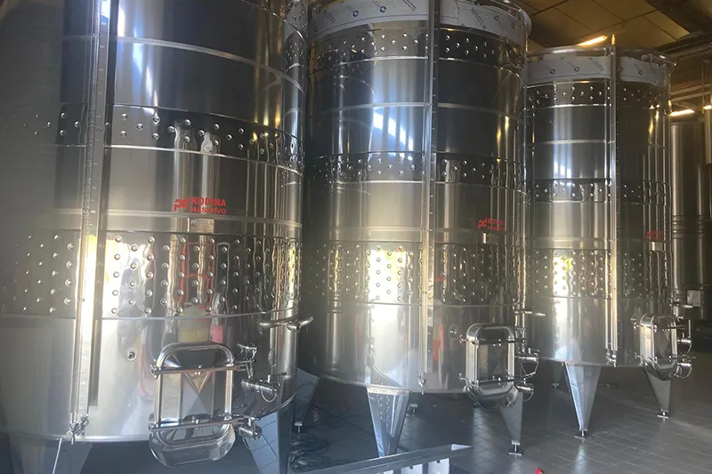 Nos cuves en inox 316L, fabriquées par Rodina Haskovo (Bulgarie), offrent une résistance exceptionnelle à la corrosion et une hygiène parfaite pour le stockage de vos vins.